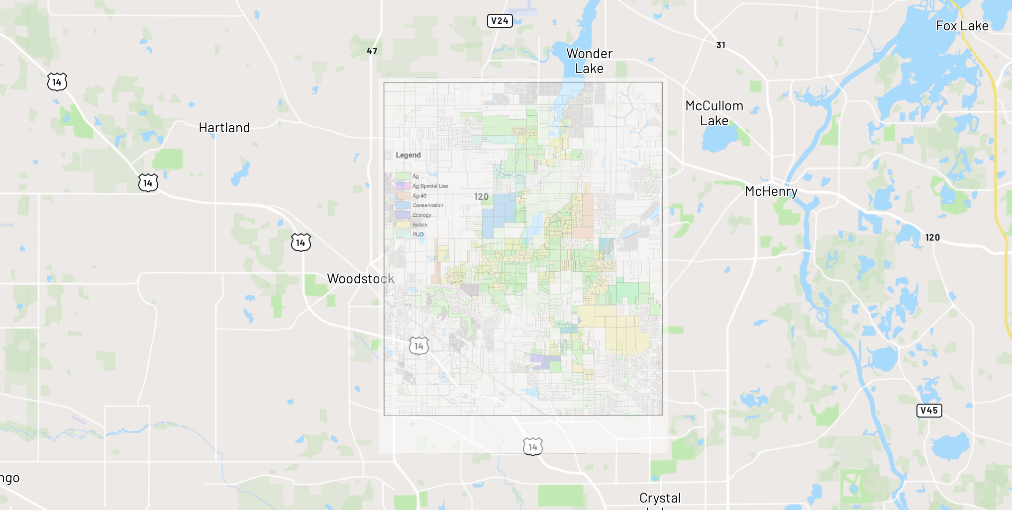Zoning map georeferenced near Woodstock, McHenry County, Illinois